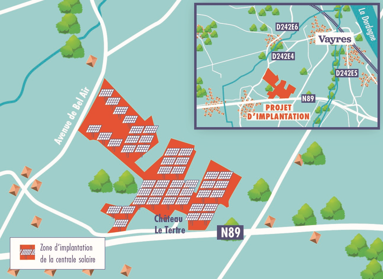Initié en 2023 à Vayres (33), le projet de centrale agrivoltaïque aura une puissance totale de 9 Mégawatts-crêtes.